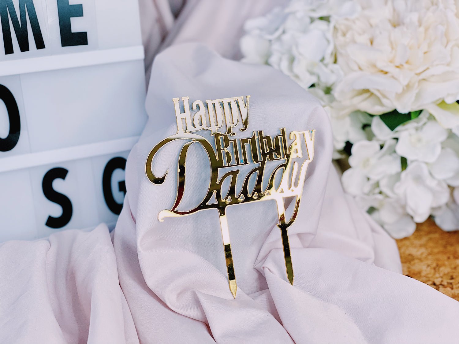 Add a special touch to your flower bouquet with the "Happy Birthday Daddy" Birthday Gold Topper. This elegant topper adds a festive and personalized message, making your gift even more meaningful for Dad's birthday celebration. It enhances the bouquet’s look with a shiny gold finish that stands out.