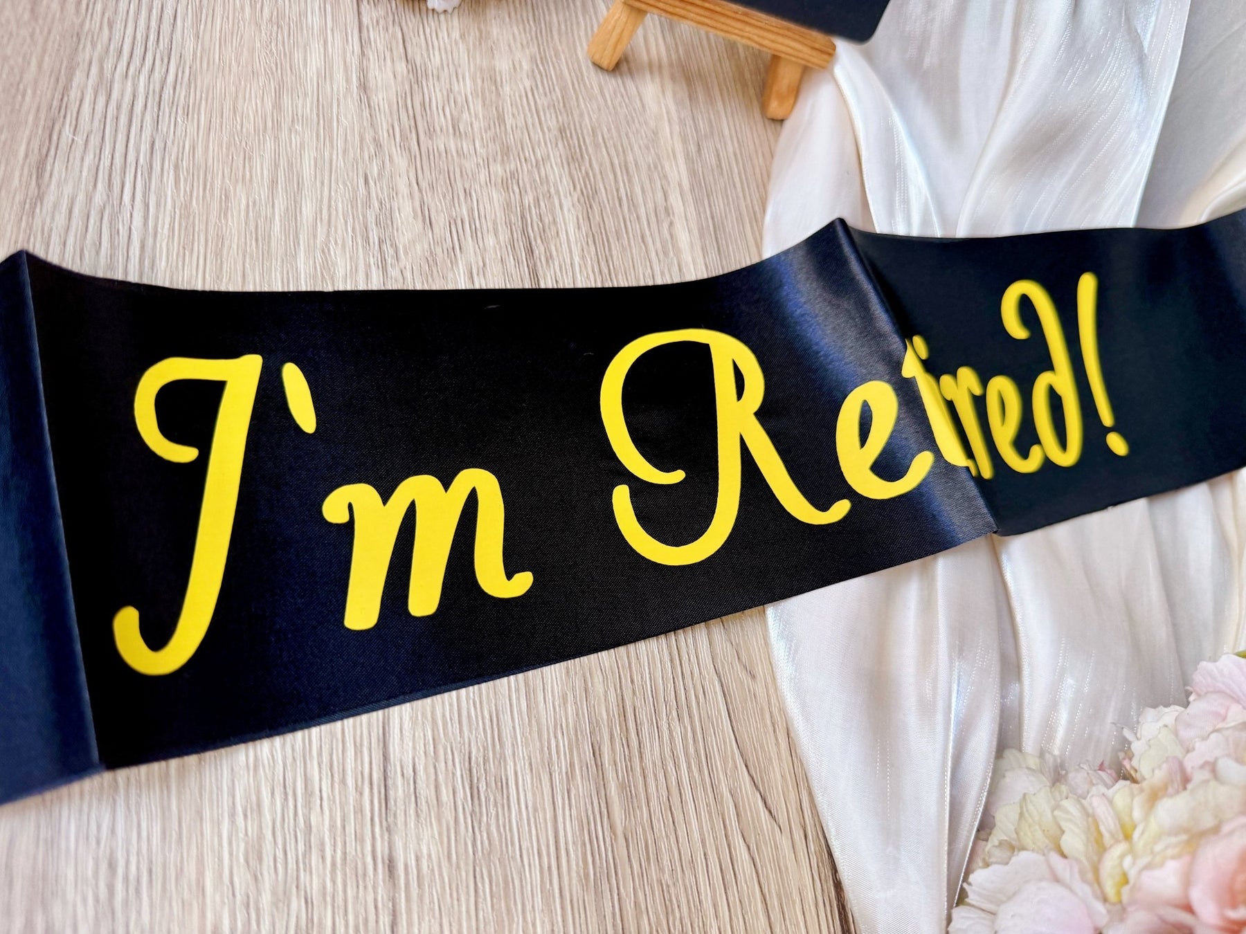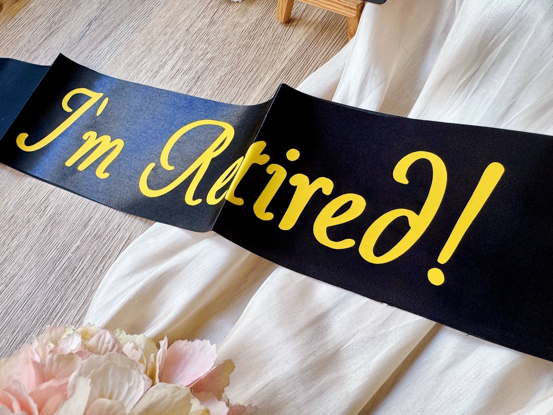 Announce your retirement in a fun and stylish way with our "I'm Retired" Sash. This sash features "I'm Retired" text in bold fonts, providing a humorous and festive way to mark your retirement moment. Perfect for retirement parties and photo ops.