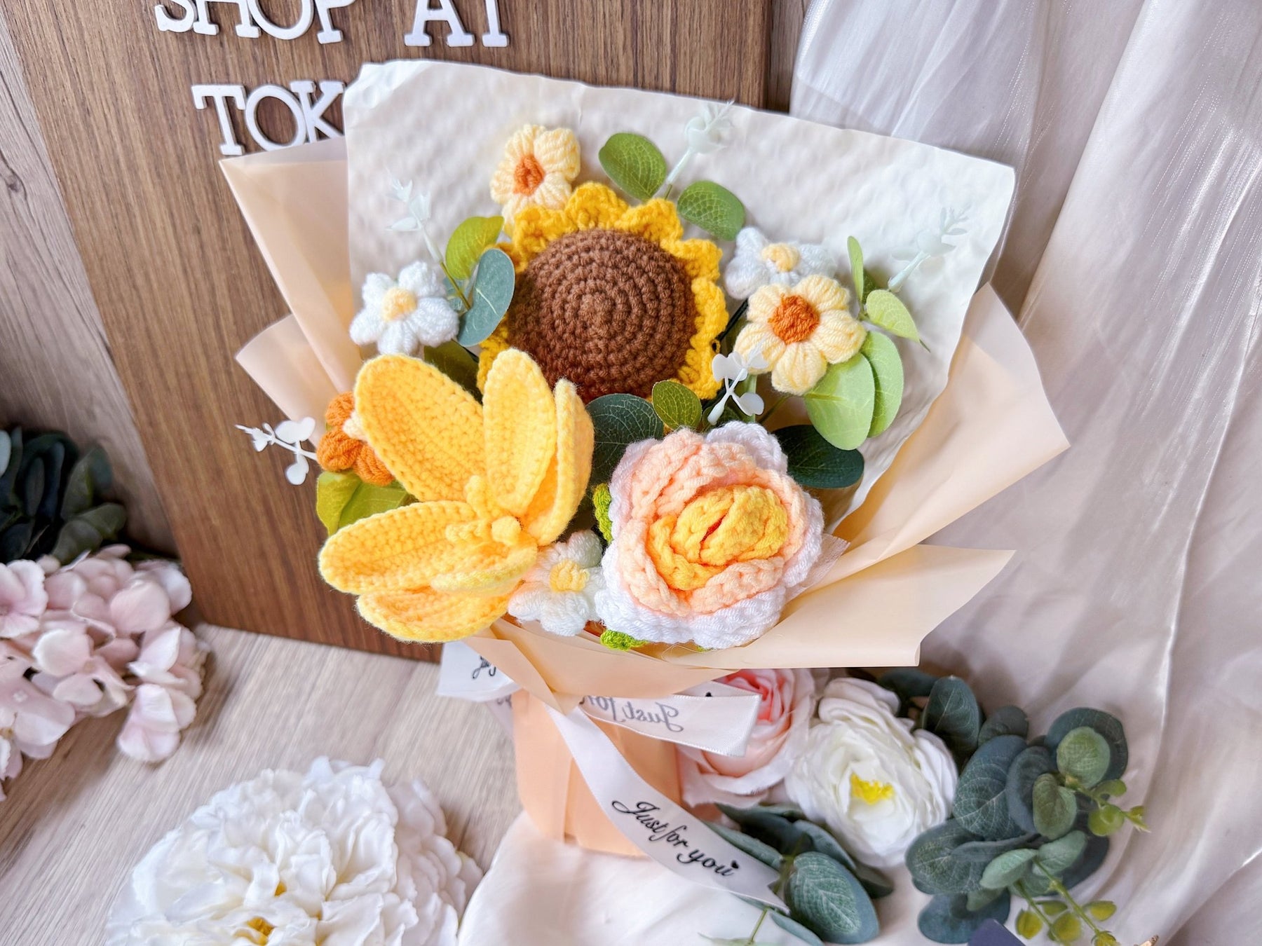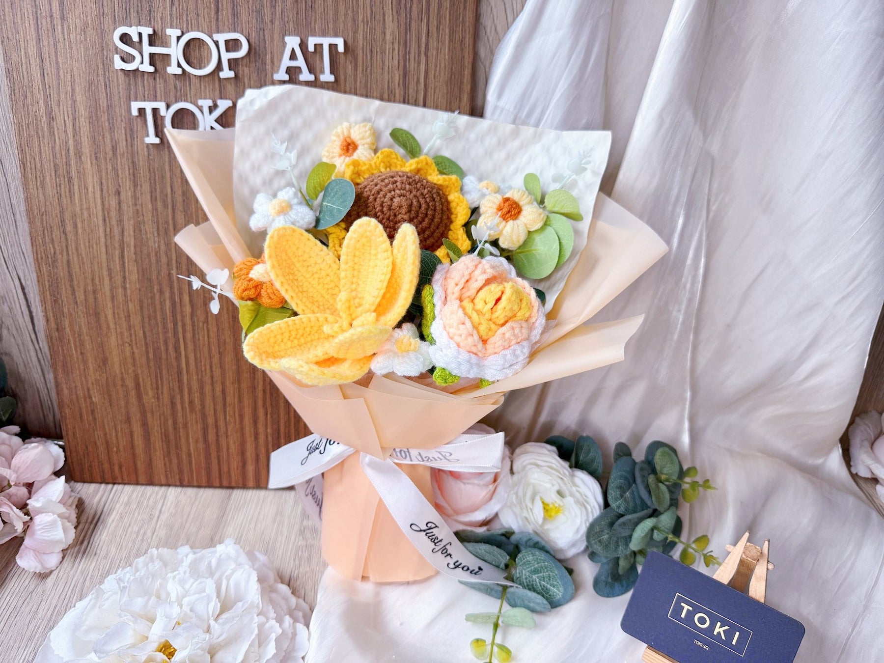 TOKI - Crochet Sunflower, Lily & Rose Bouquet - Yellow, Flowers, Birthday / Graduation