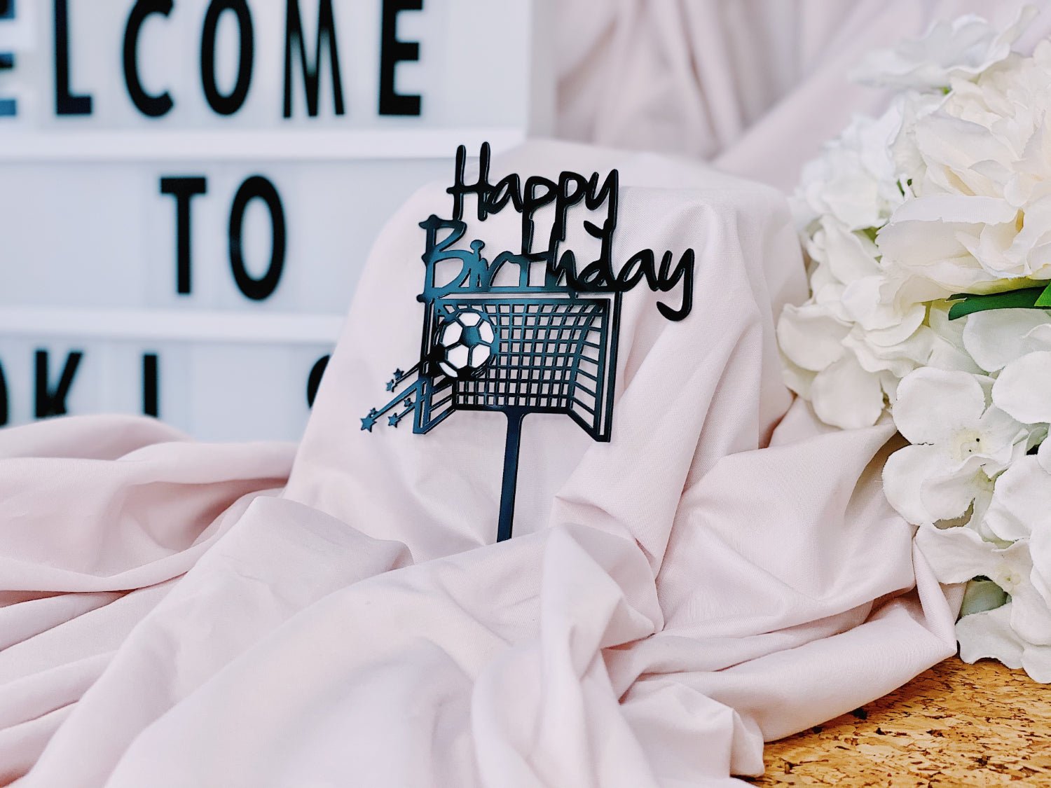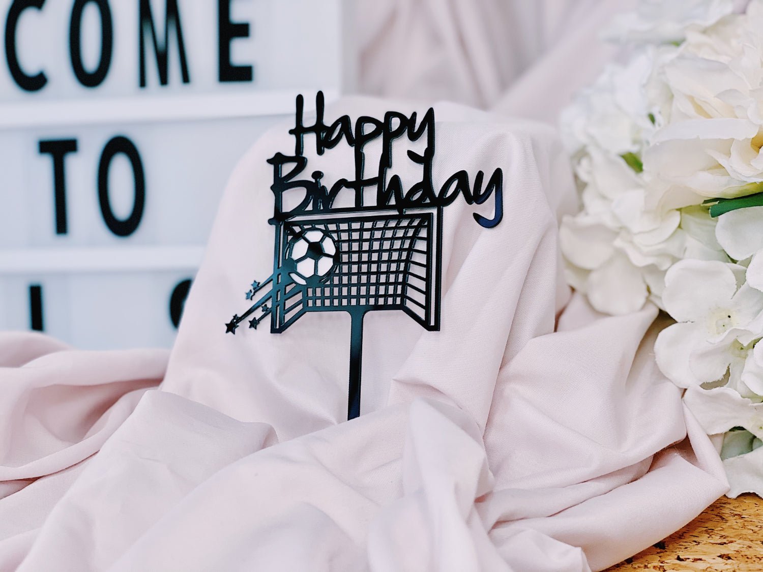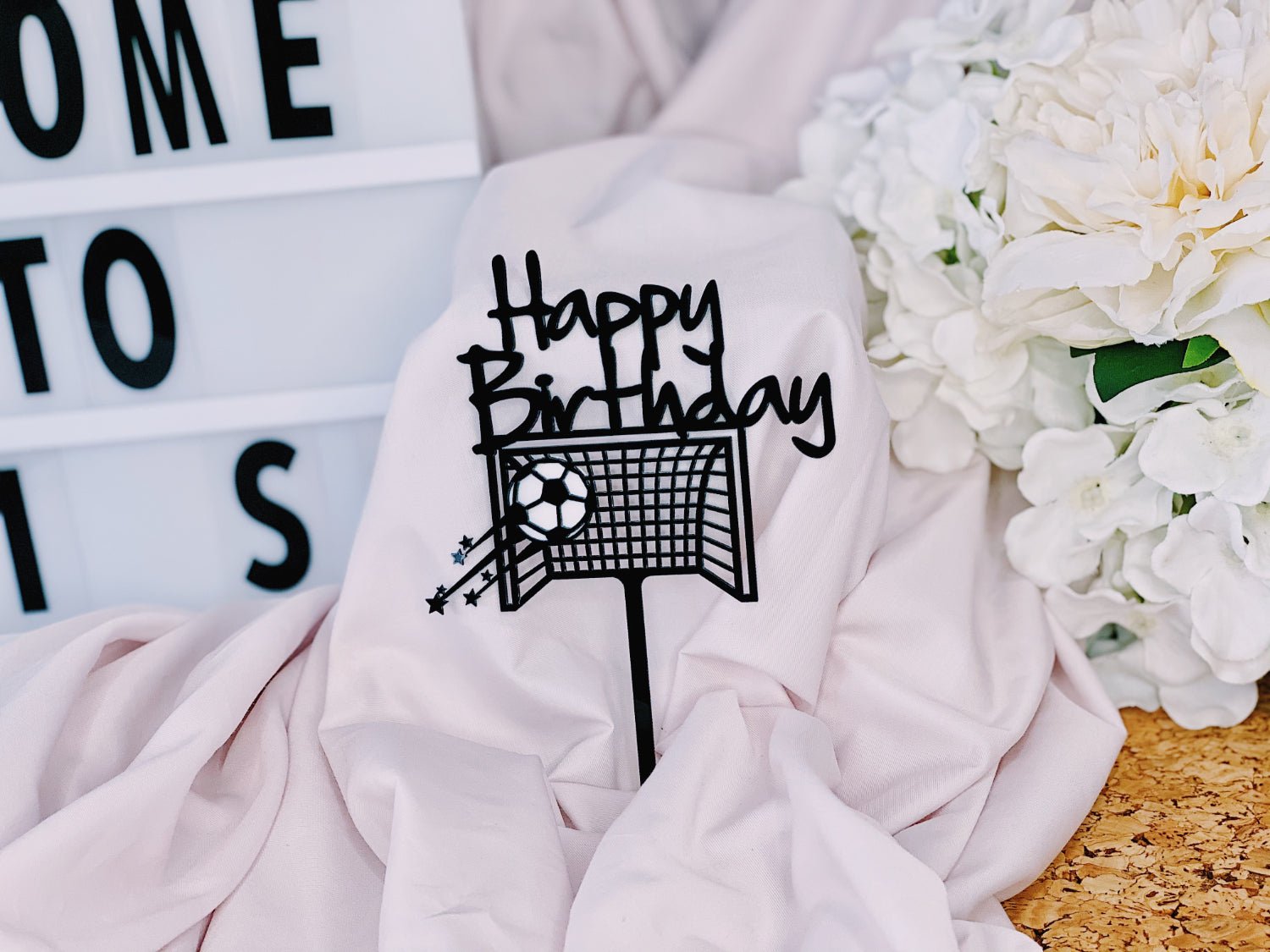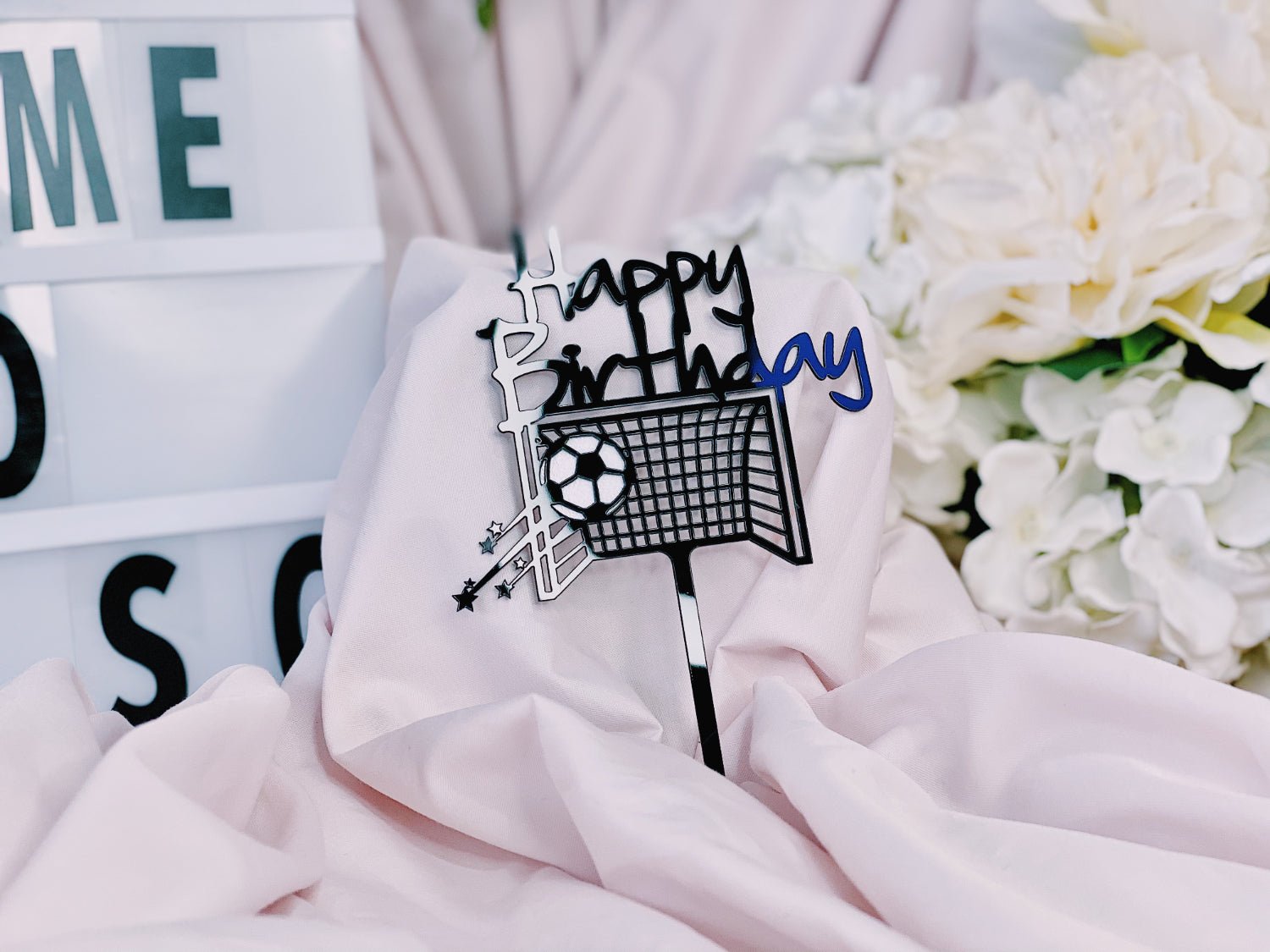 Add a festive touch to your flower bouquet with the "Happy Birthday" Soccer Football Topper. Perfect for soccer fans, this decorative topper adds a fun and personalized element to your gift, making birthday celebrations extra special and memorable.