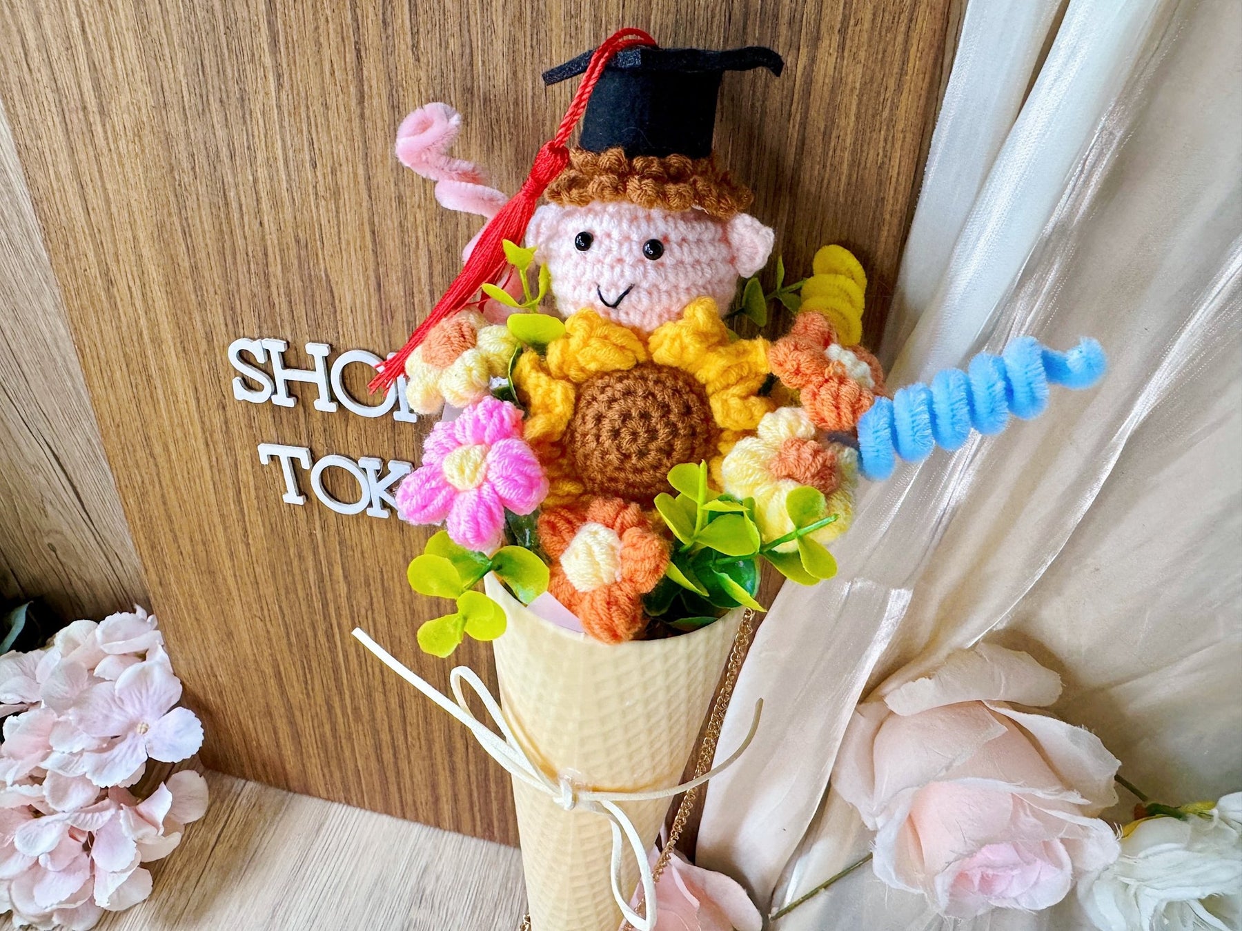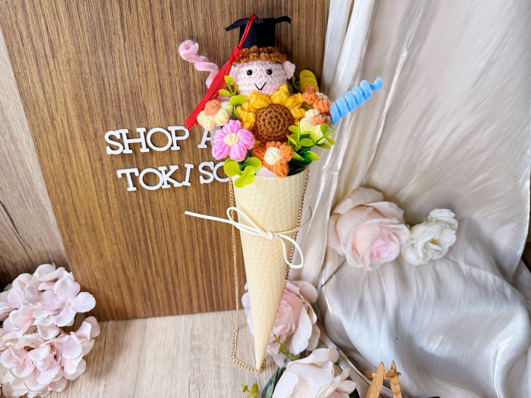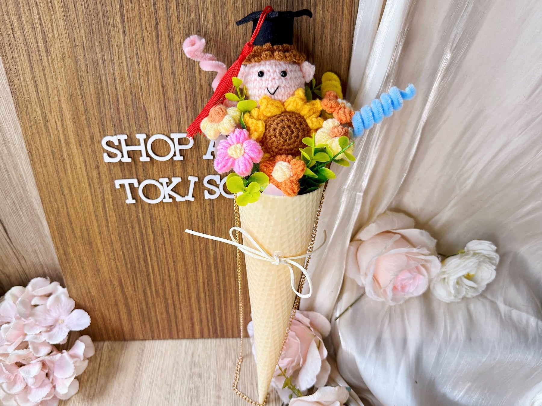 TOKI - Sunflower Crochet Cone - Graduate Short Hair, Flowers, Graduation /