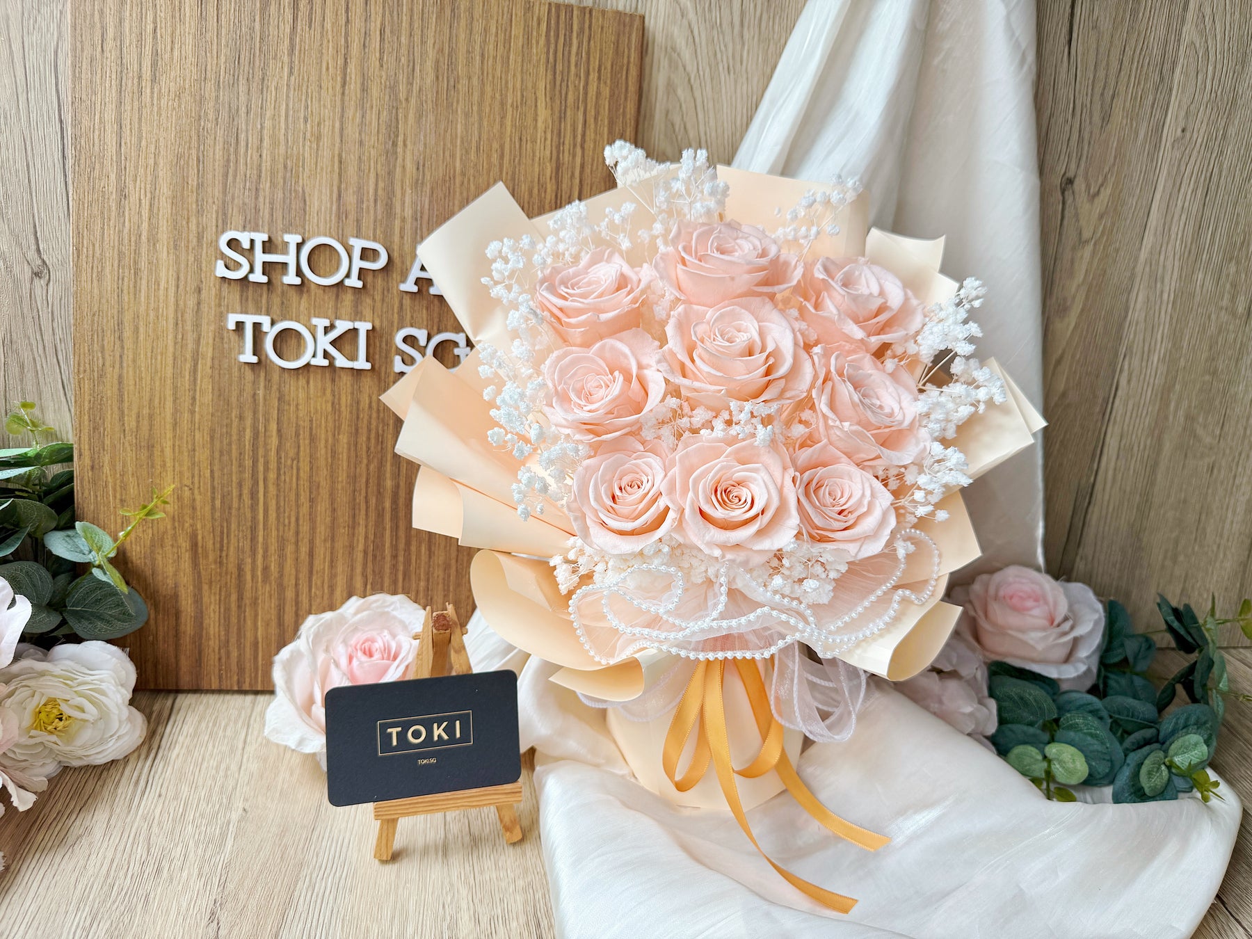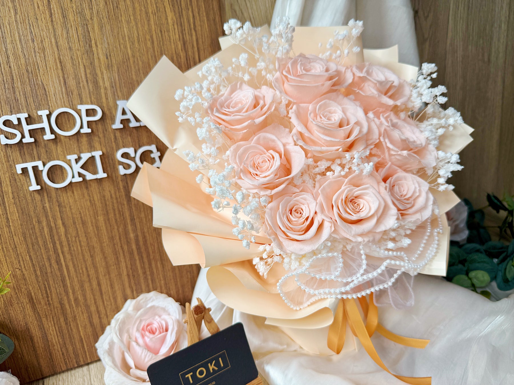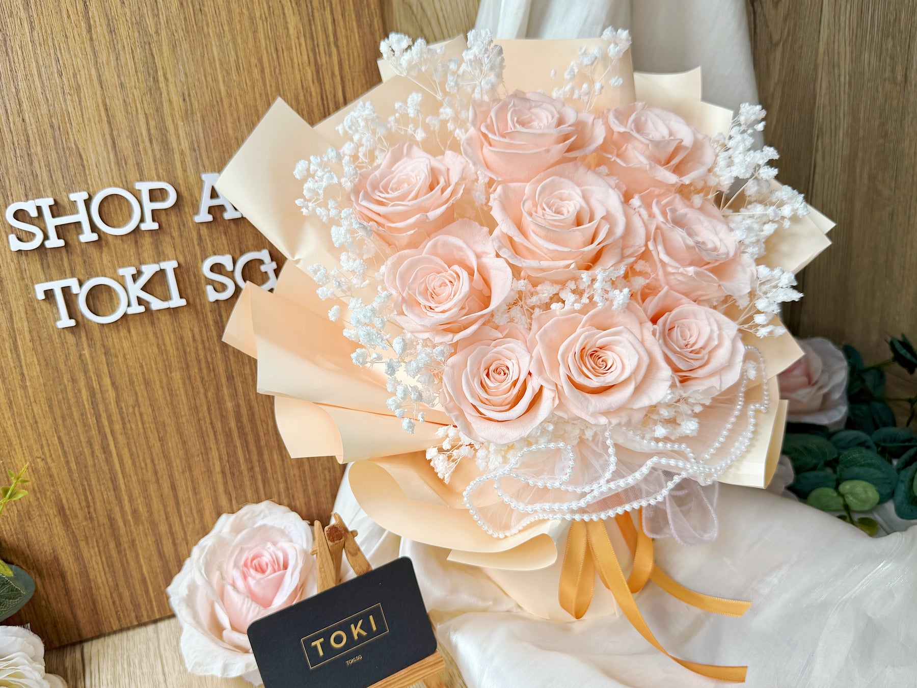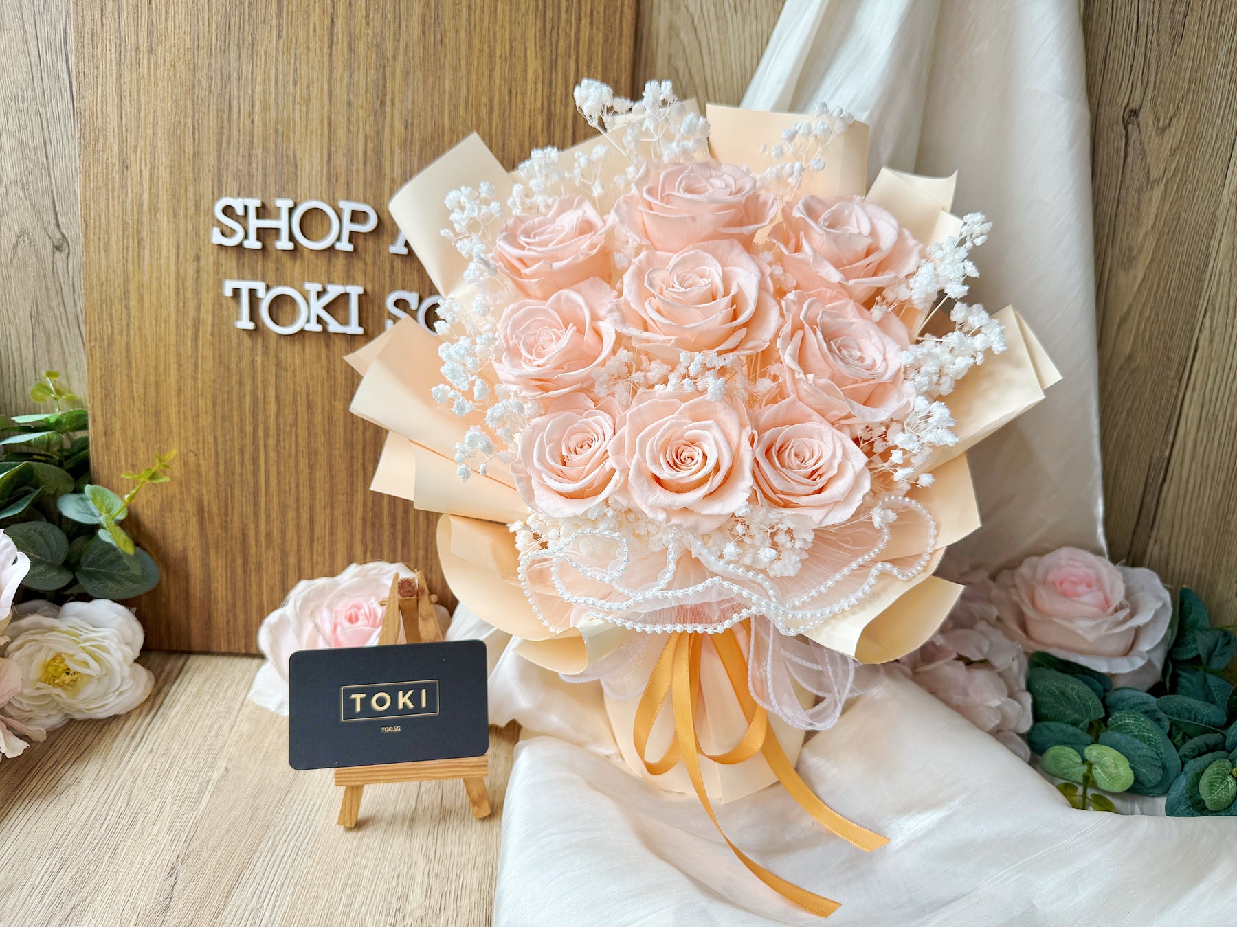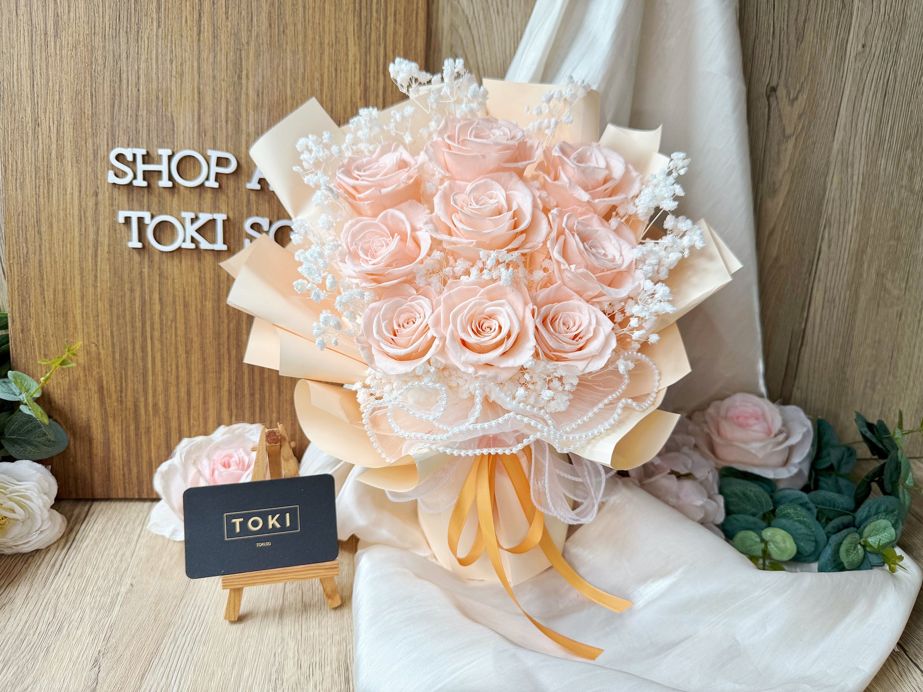 Eternal beauty captured in a timeless bouquet. Nine preserved roses paired with delicate baby breath create an effortless, classic arrangement that lasts for months. Perfect for expressing love, gratitude, or simply brightening any space. Each bloom is carefully preserved to maintain its natural elegance without the need for water or maintenance. A gift that endures.