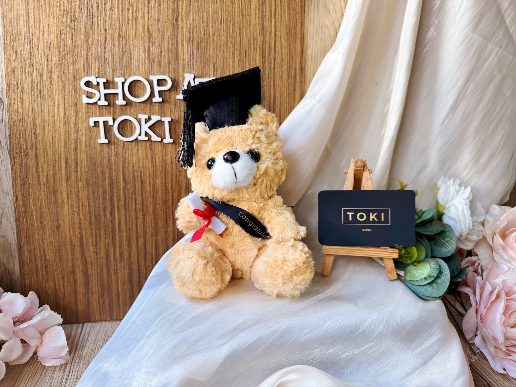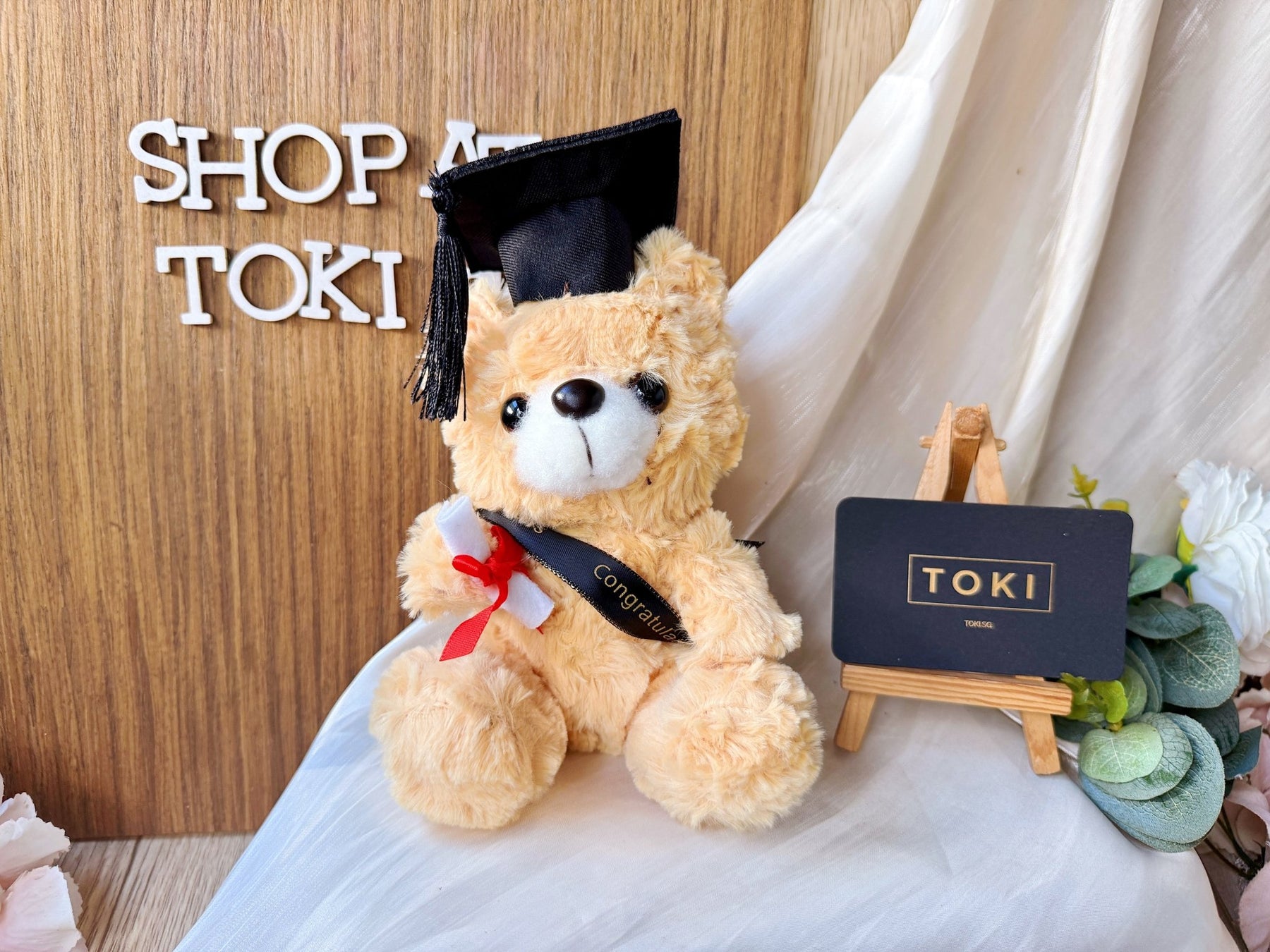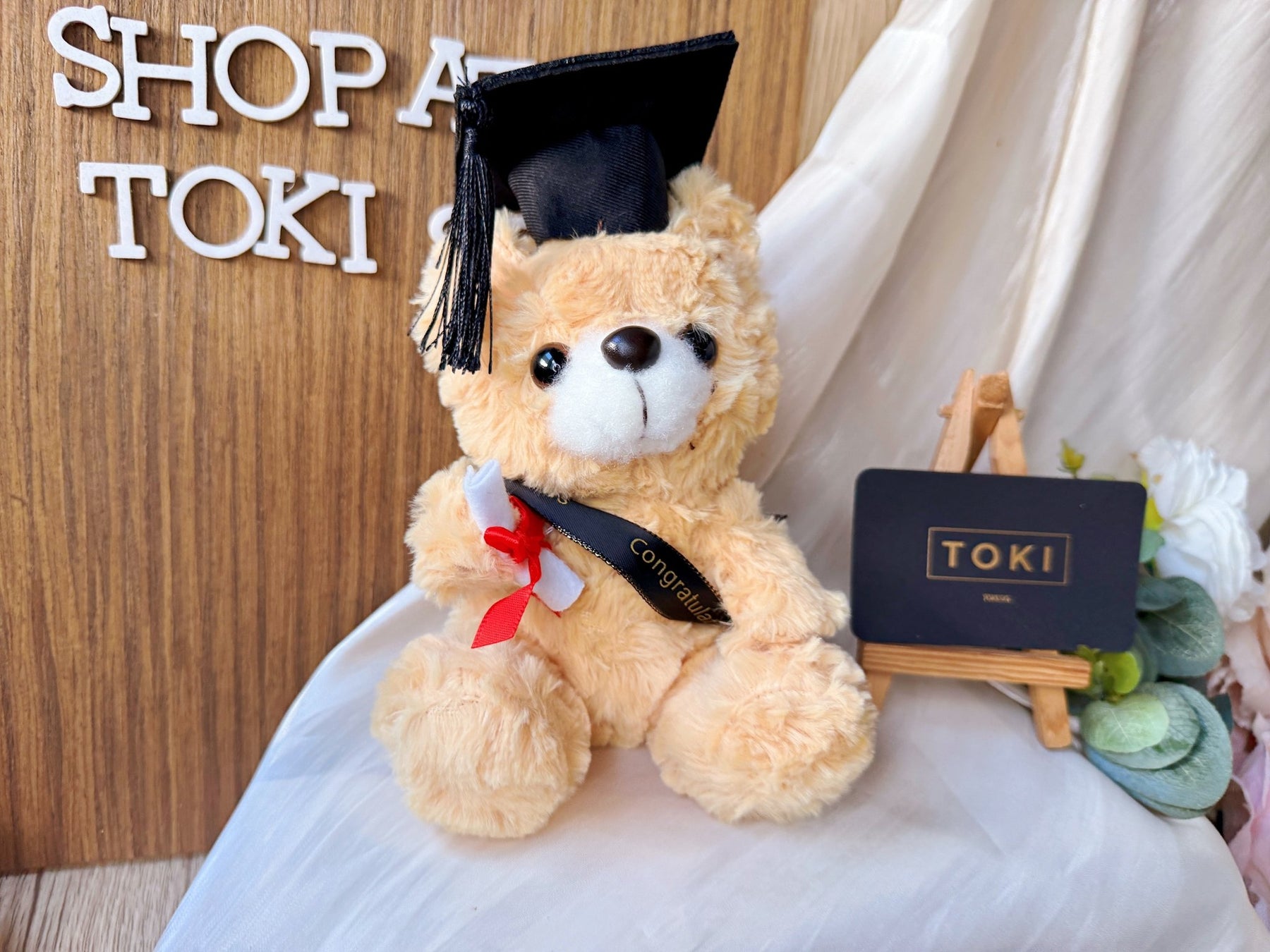 TOKI - Graduation Bear with Mortar Board, Sash & Certificate - Black (18CM), Soft Toys, /