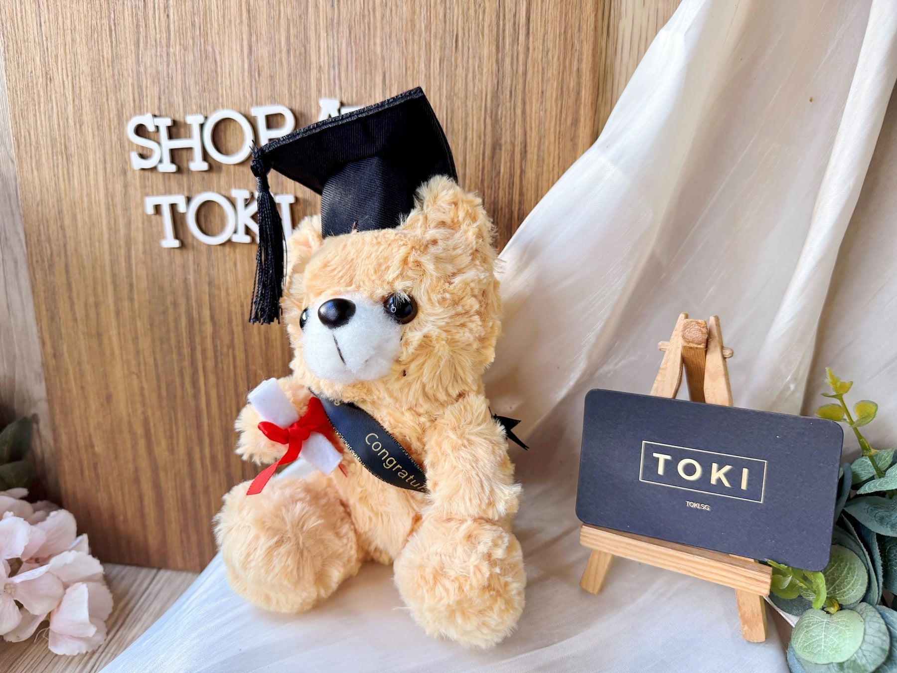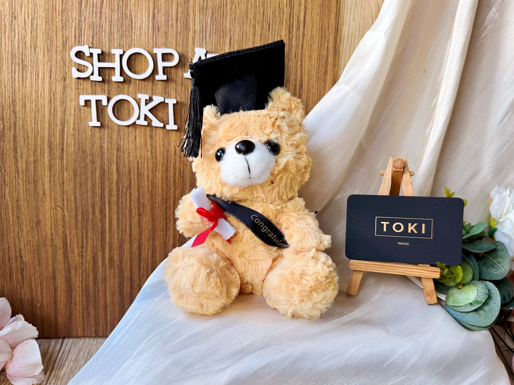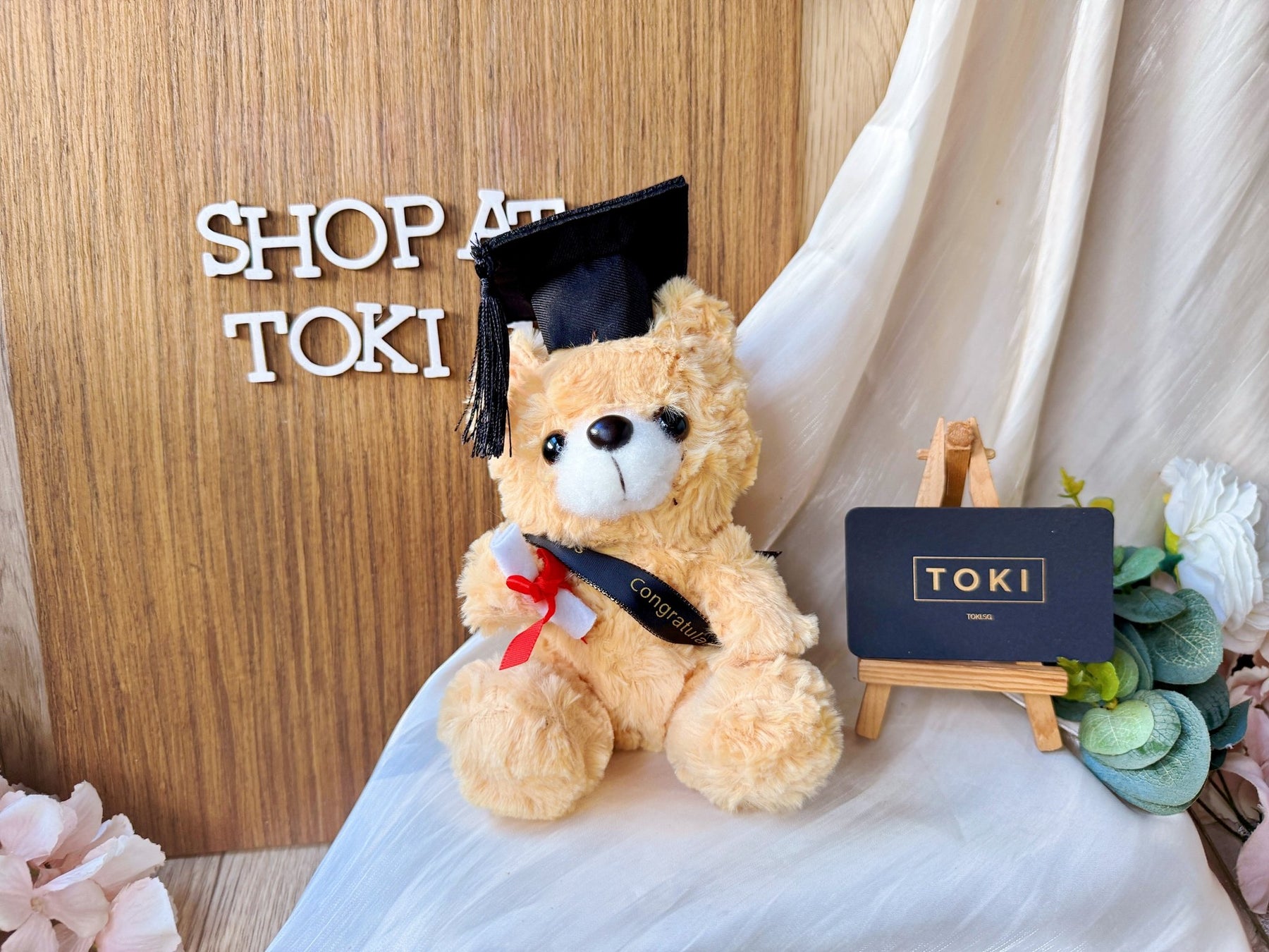 TOKI - Graduation Bear with Mortar Board, Sash & Certificate - Black (18CM), Soft Toys, /