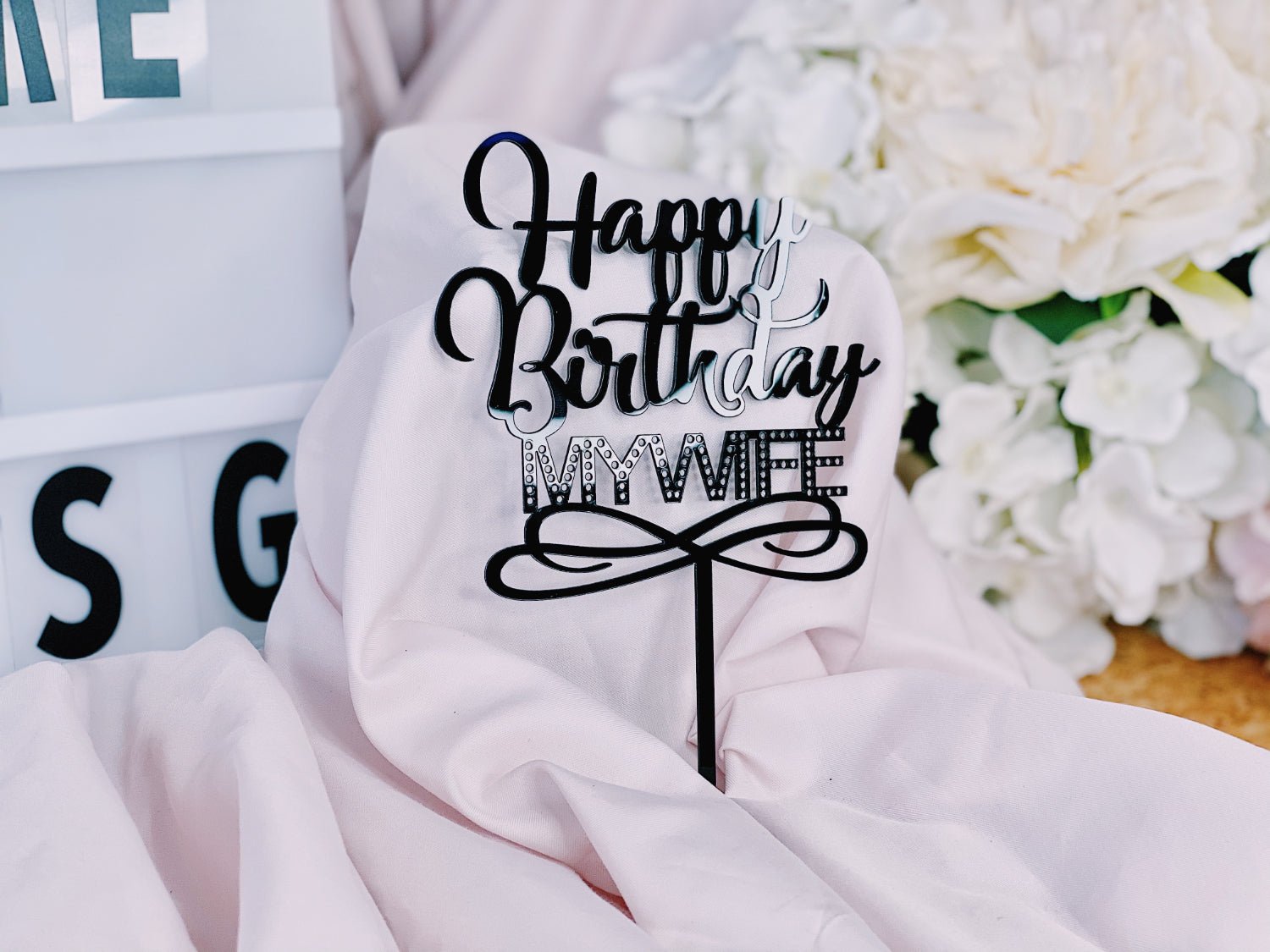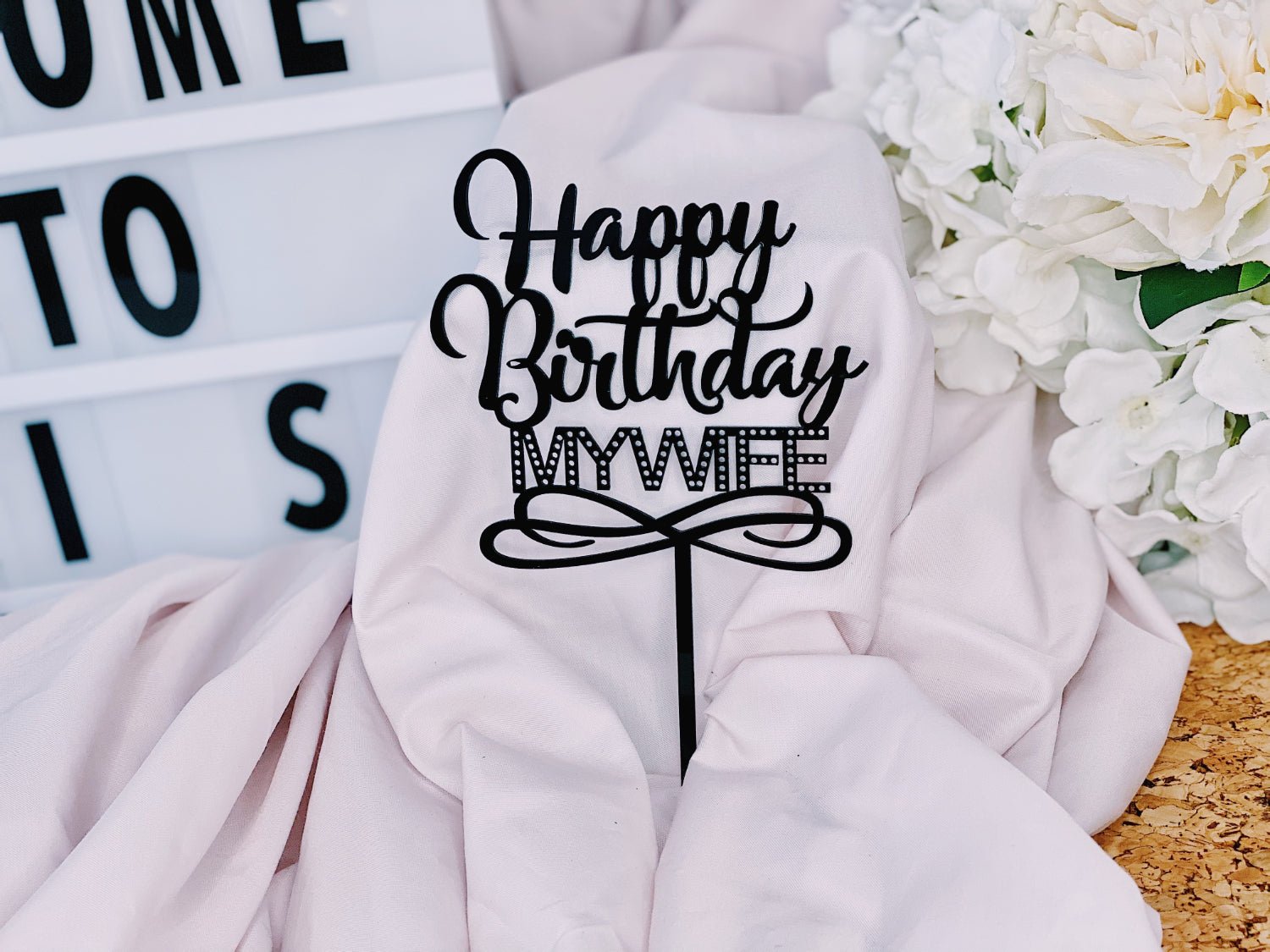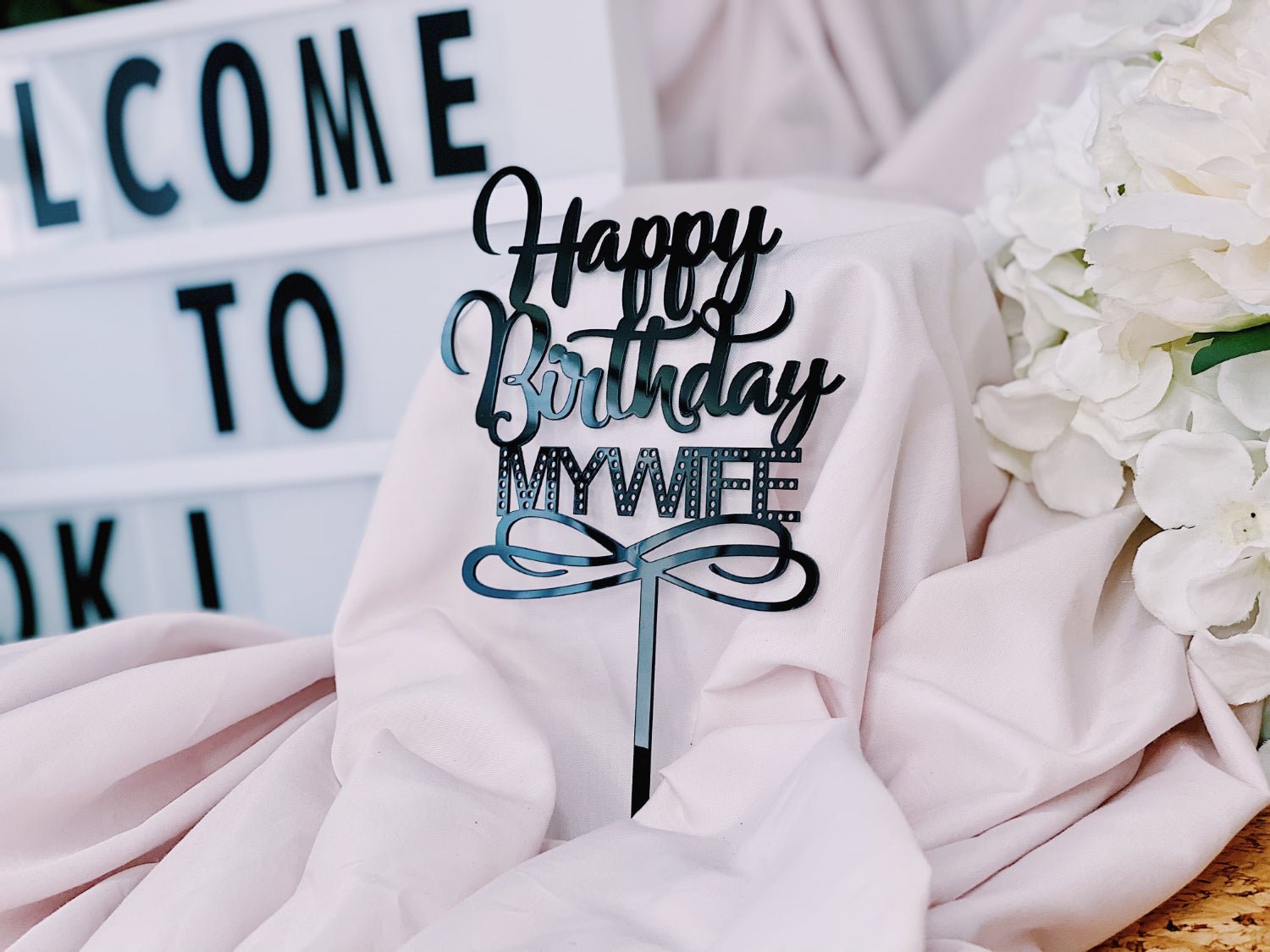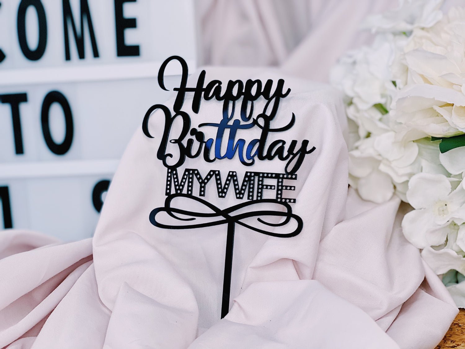 TOKI - (Add - On): "Happy Birthday My Wife" Birthday Black Topper, Flower Toppers, Birthday / Wife