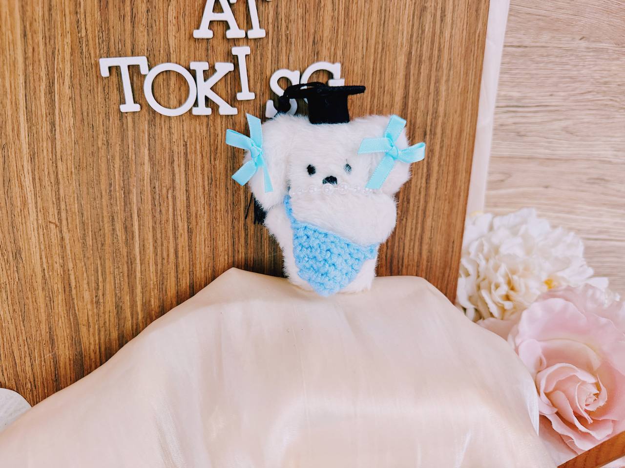 This Y2K Blue (6CM) plush toy is a must-have for any Y2K girl. With ribbons in its hair and an adorable bag, it's the perfect accessory to complete any outfit. Add it to a flower bouquet for an extra cute touch!